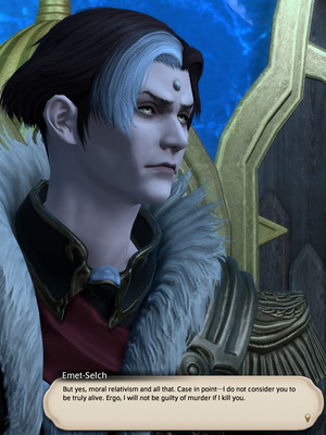 He teams up with one of the last remaining Ascians, Hermes AKA Fandaniel, and goes to the moon to free Zodiark - The 'Evil' God of the Ascians (remember?), just to get your attention. You follow but they succeed. You also make friends with rabbits that live on the moon but thats not important.