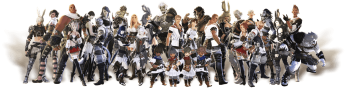 In the main part of the game you can also drastically change your play style through the different "jobs." As in, damage dealing jobs, some healing jobs which keep the party alive and some tank jobs which are sturdy and absorb lots of damage. Usually you adventure in a group consisting of a mixture of different job roles, such as 1 healer, 1 tank and 2 damage dealers. In larger instances there 24 people playing together to overcome gigantic foes.
